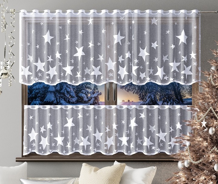Vánoční krátká záclonka s hvězdičkami (SW)